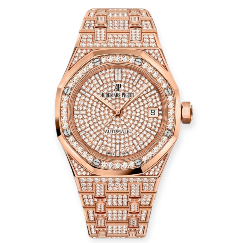Pre-owned Audemars Piguet Royal Oak Full Baguette RoseG...