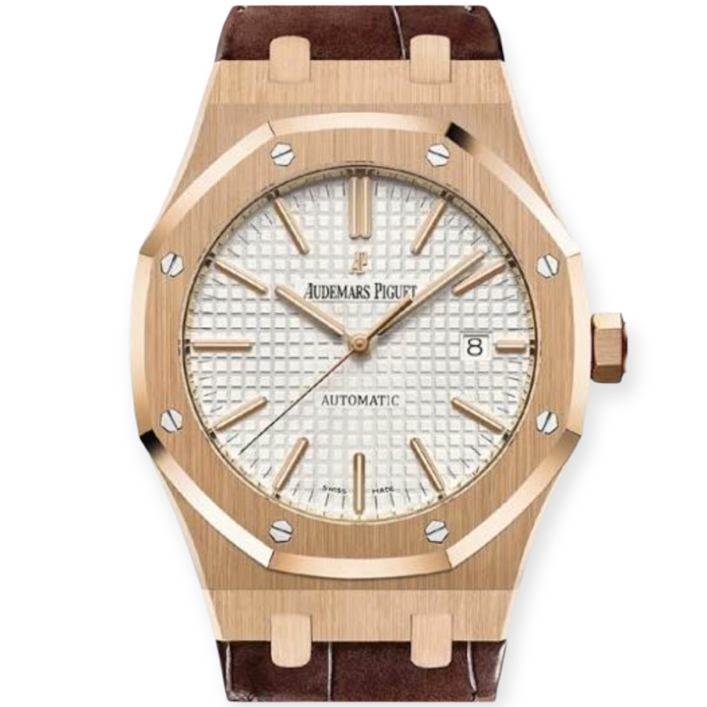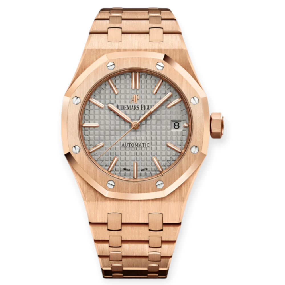 Pre-owned Audemars Piguet Royal Oak 41mm Rose Gold Silv...