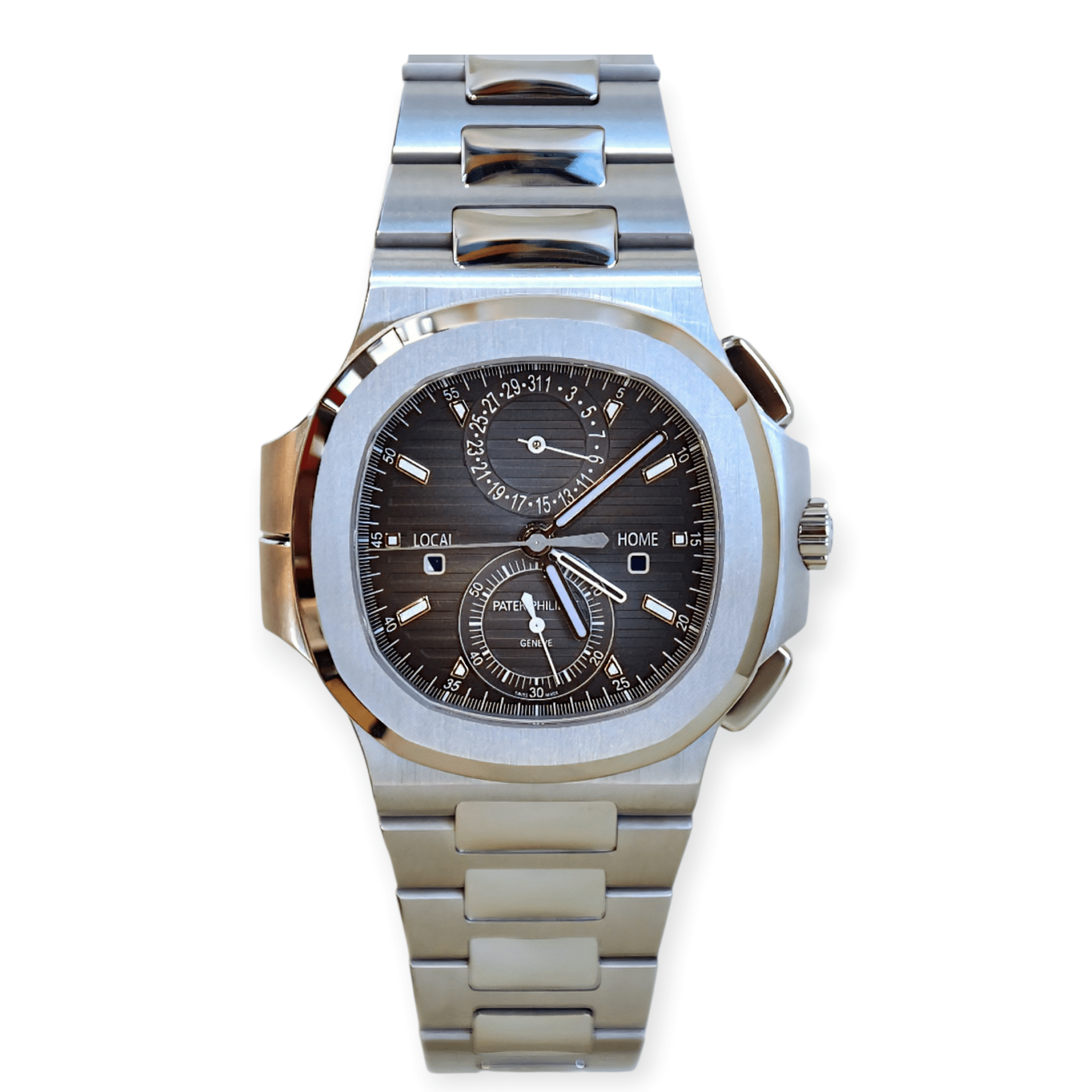 Pre-owned Patek Philippe Aquanaut Travel Time Stainless...