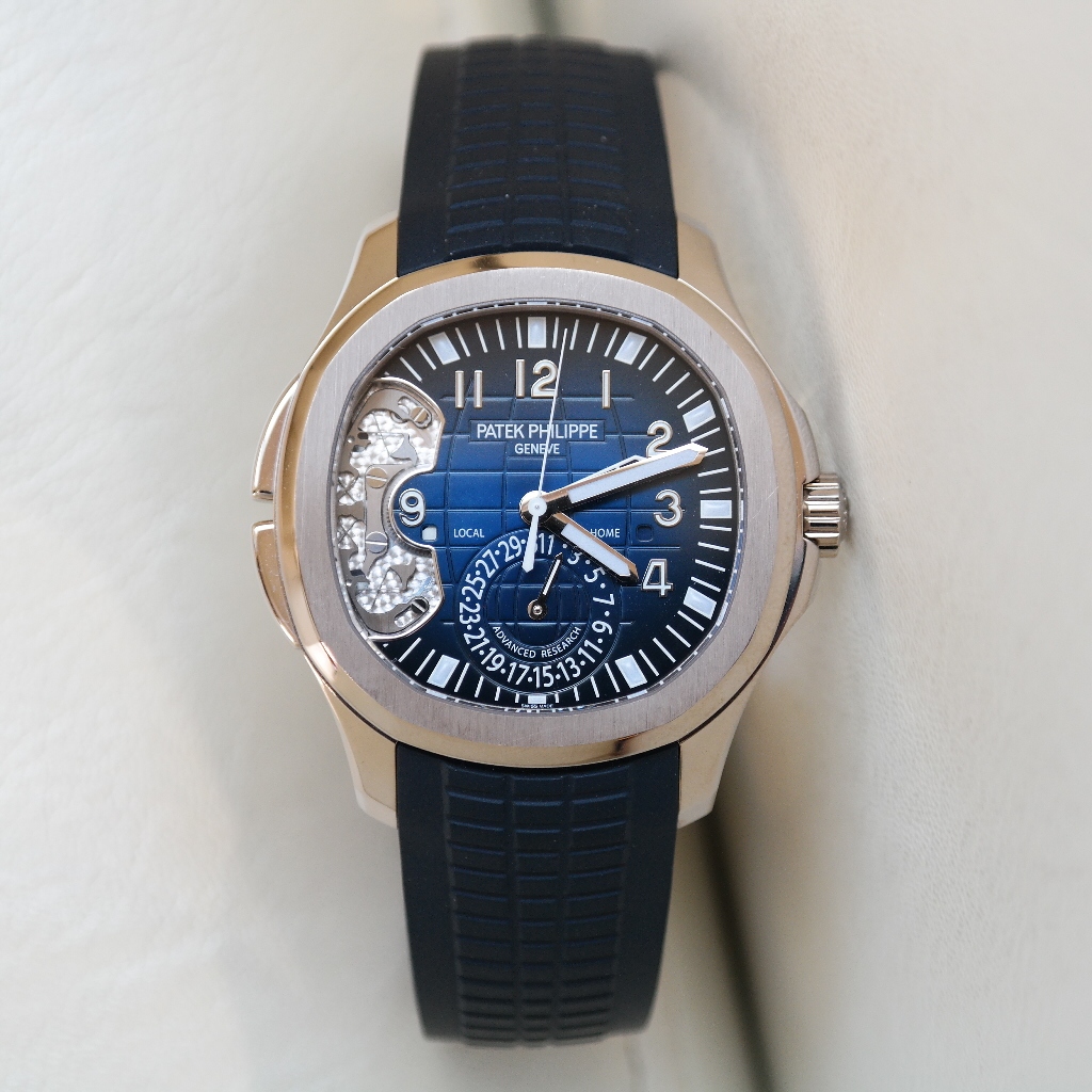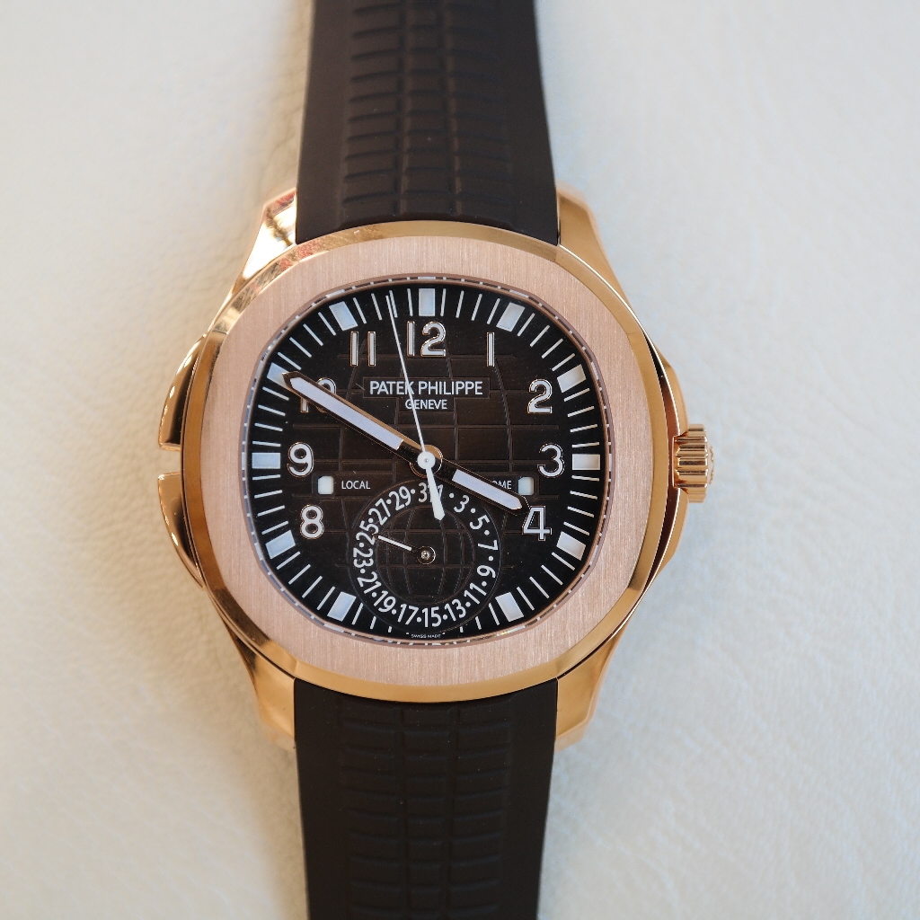 Pre-owned Patek Philippe Aquanaut Travel Time Rose Gold...