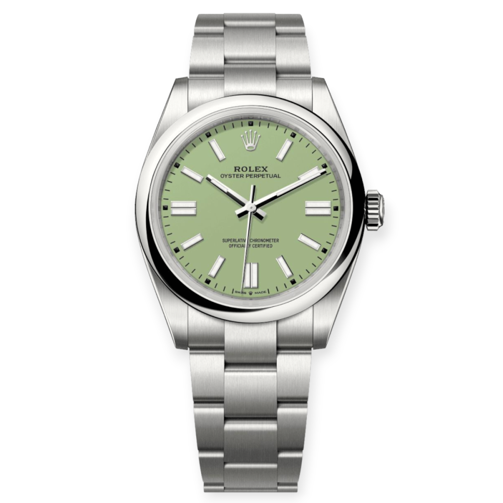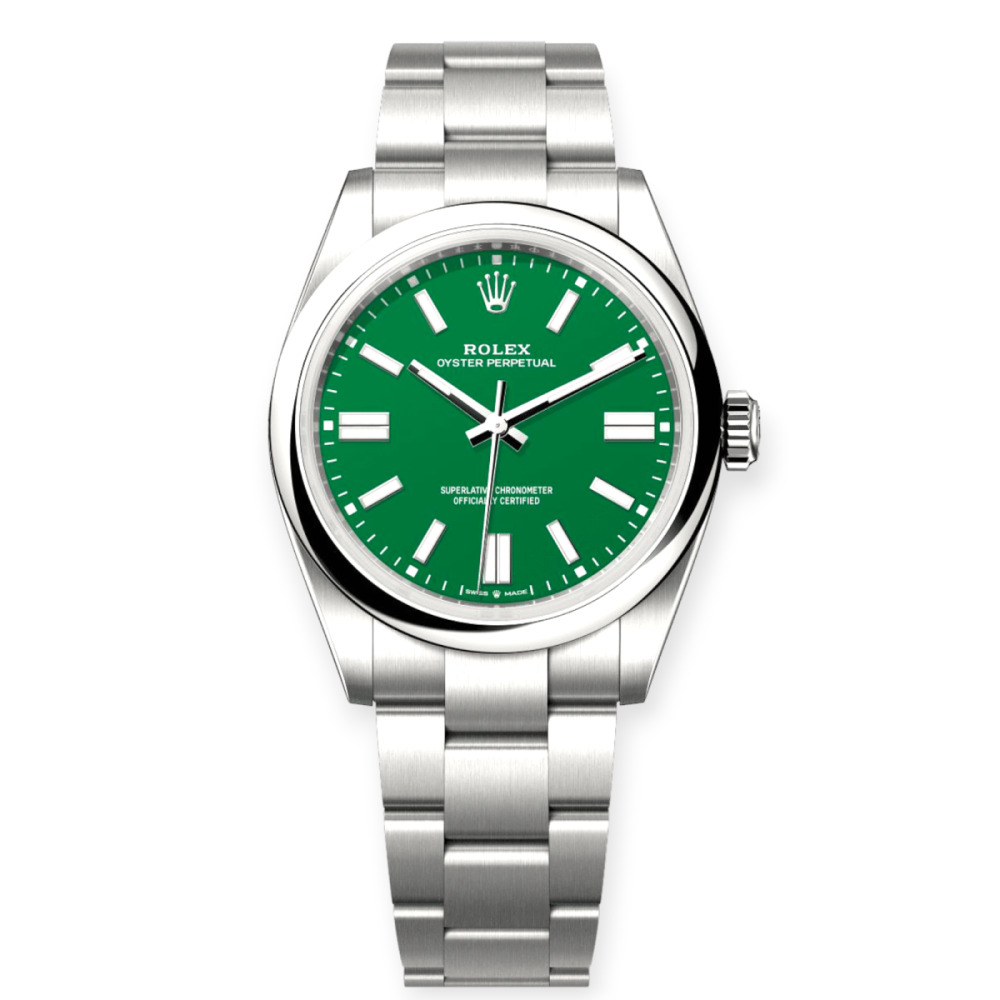 Rolex Oyster Perpetual Steel 41mm: This timeless look features a steel case and bracelet with an iconic oyster design. It’s water-resistant up to 100 meters, so it’s perfect for any occasion.