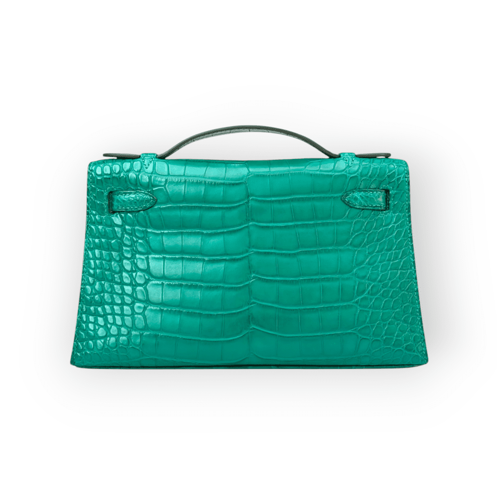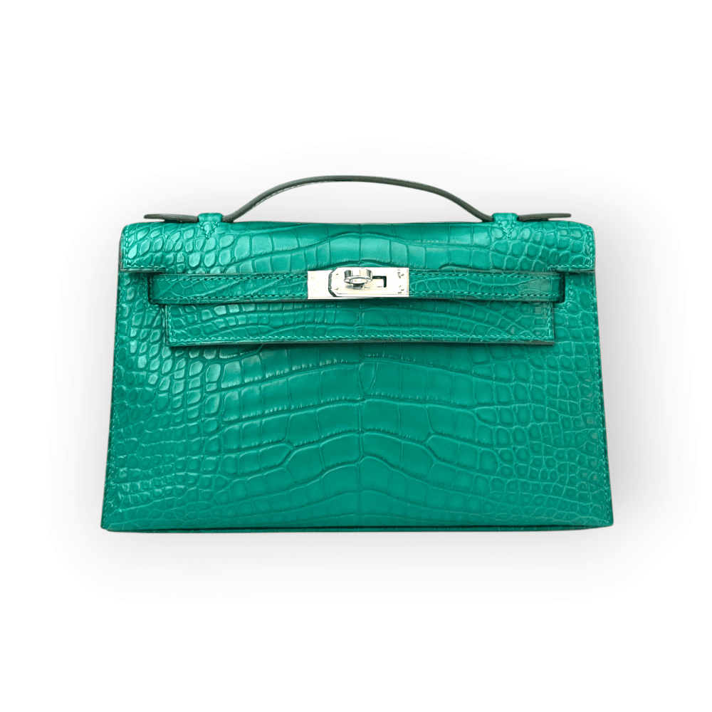 Hermes Kelly Pochette Malachite Matte Croco PHW
