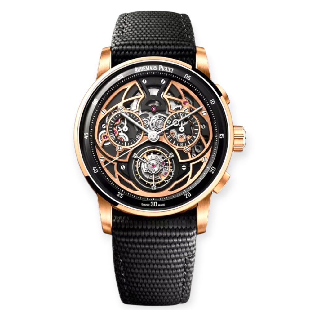 Pre-Owned Audemars Piguet Code 11.59 Self-winding Flying Tourbillion Chronograph 41mm Rose Gold Skeleton Dial Black Strap Limited Edition of 50 26399NR.OO.D002KB.01