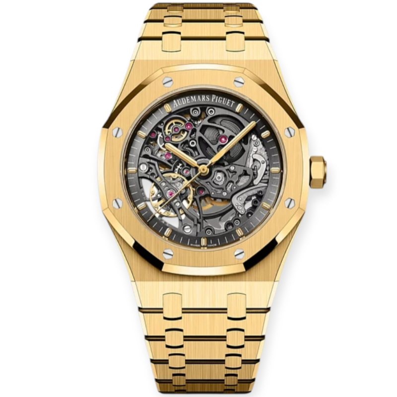 Pre-owned Audemars Piguet Royal Oak Openworked 41mm Yellow Gold Black Toned Dial 15407BA.OO.1220BA.01