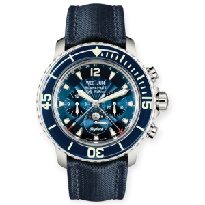 Pre-Owned Blancpain Fifty Fathoms Bathyscaphe Chronograph Flyback 43.60mm Green Dial Canvas Strap 5200 0153 B52A