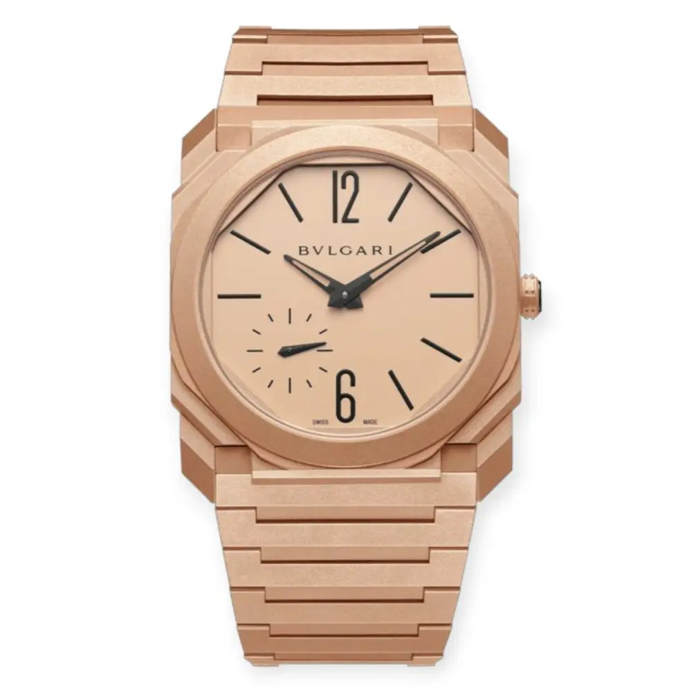 The Bvlgari Octo Finissimo Automatic 102912 introduces the brand’s ultra‑thin automatic movement inside a stainless‑steel case with a sandblasted finish. Its architectural octagonal design, integrated bracelet, and monochrome aesthetic define the modern identity of the Octo Finissimo line. Powered by the in‑house BVL 138 micro‑rotor caliber, this model combines Italian design with Swiss mechanical finesse.