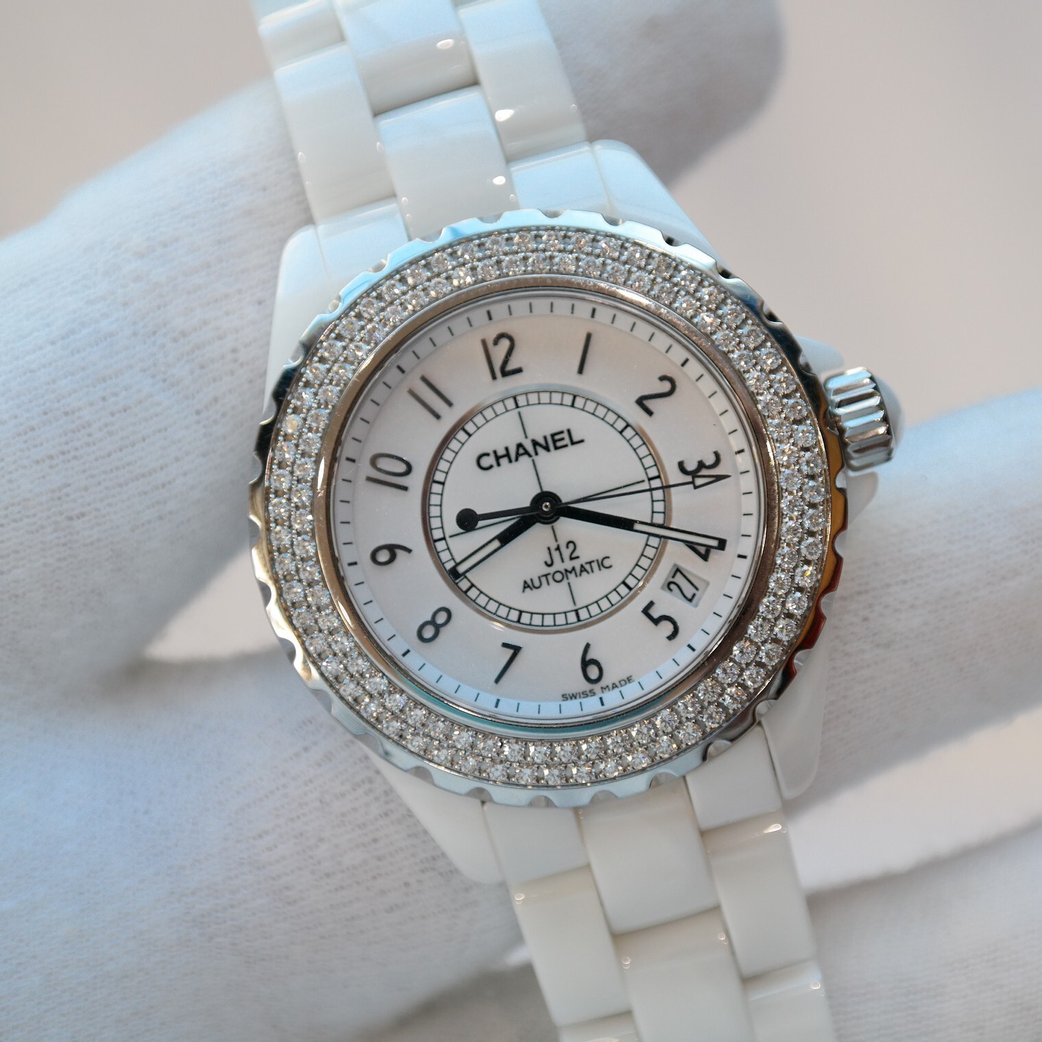 Buy Pre-owned Chanel J12 Automatic Ladies Watch 38mm White Ceramic Steel & Diamonds H0969