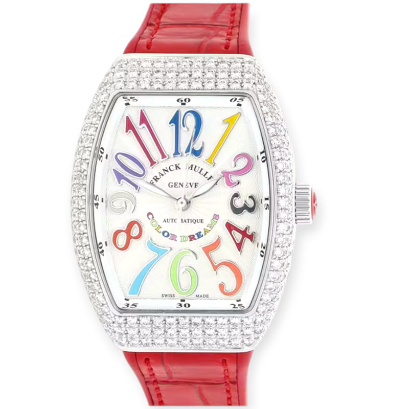 Pre-Owned Frank Muller Lady Vanguard Diamond-Set Color Dreams Steel 32mm Red Strap V 32 QZ D COL DRM