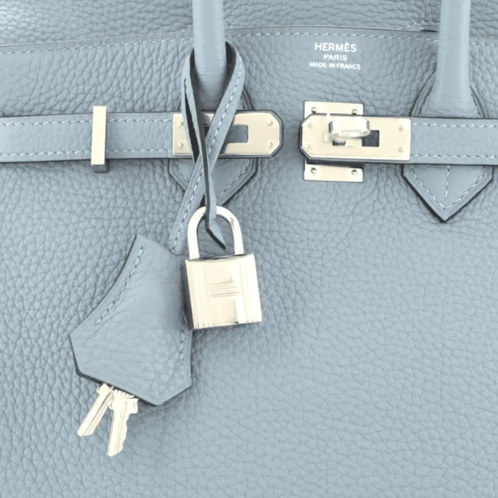 Pre-Owned Hermes Birkin 25 Blue Lin Verso Togo Leather PHW