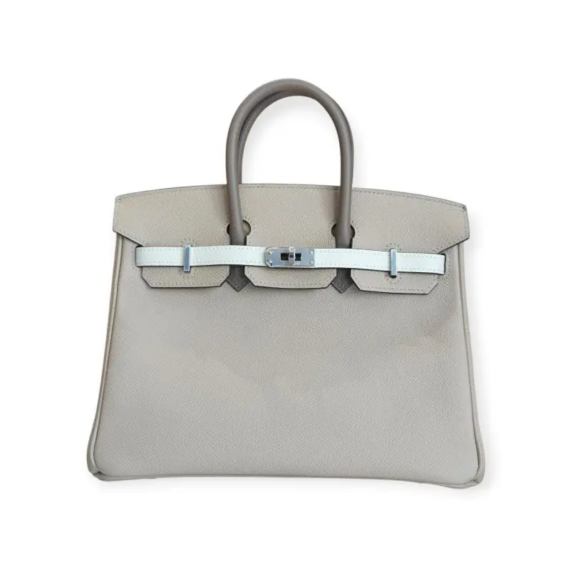 Pre-Owned Hermes Birkin 25 Retourne Tri Color Trench Craie Etoupe Epsom PHW