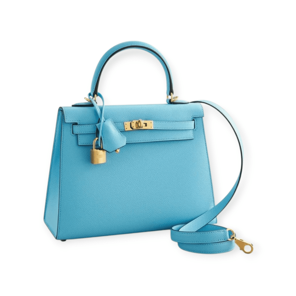 Pre-Owned Hermes Kelly 25 Sellier Epsom Blue Céleste GHW