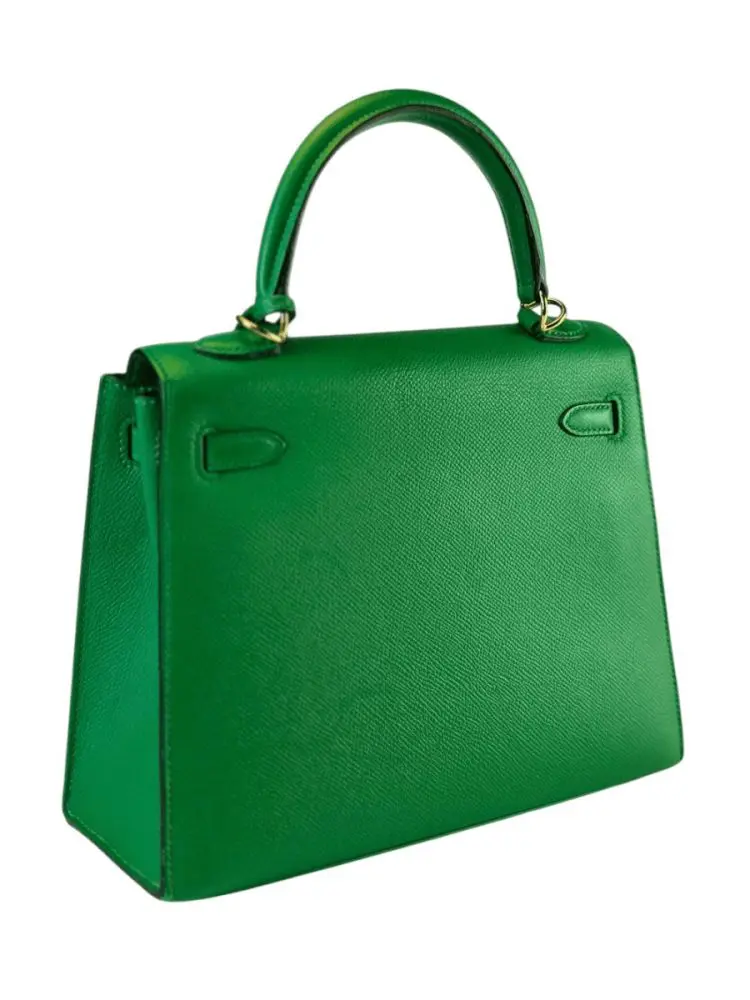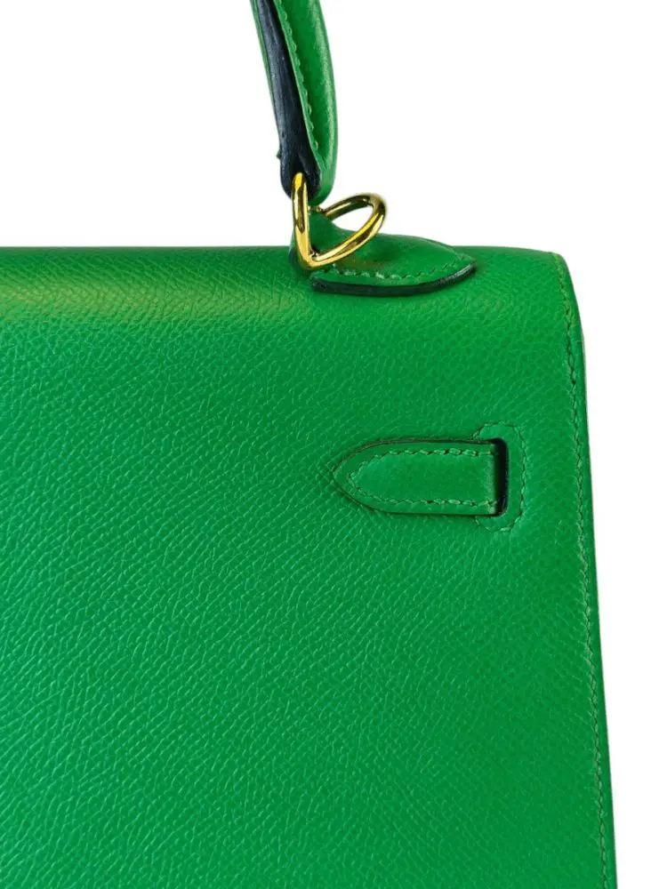 Pre-Owned Hermes Kelly 28 Epsom Green Bamboo With Gold Hardware