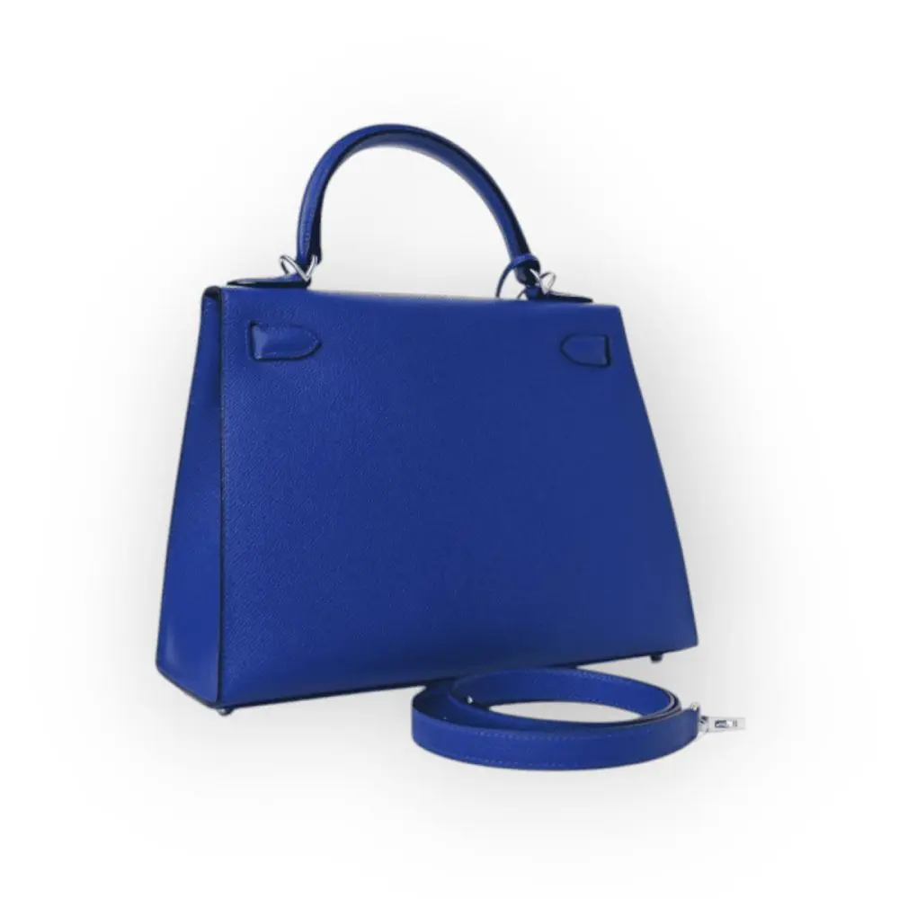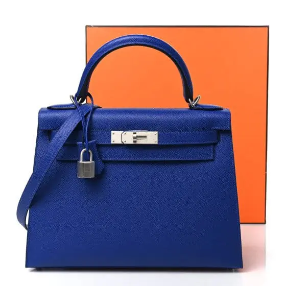 Pre-Owned Hermes Kelly 28 Sellier Bleu Royal Epsom With Palladium Hardware