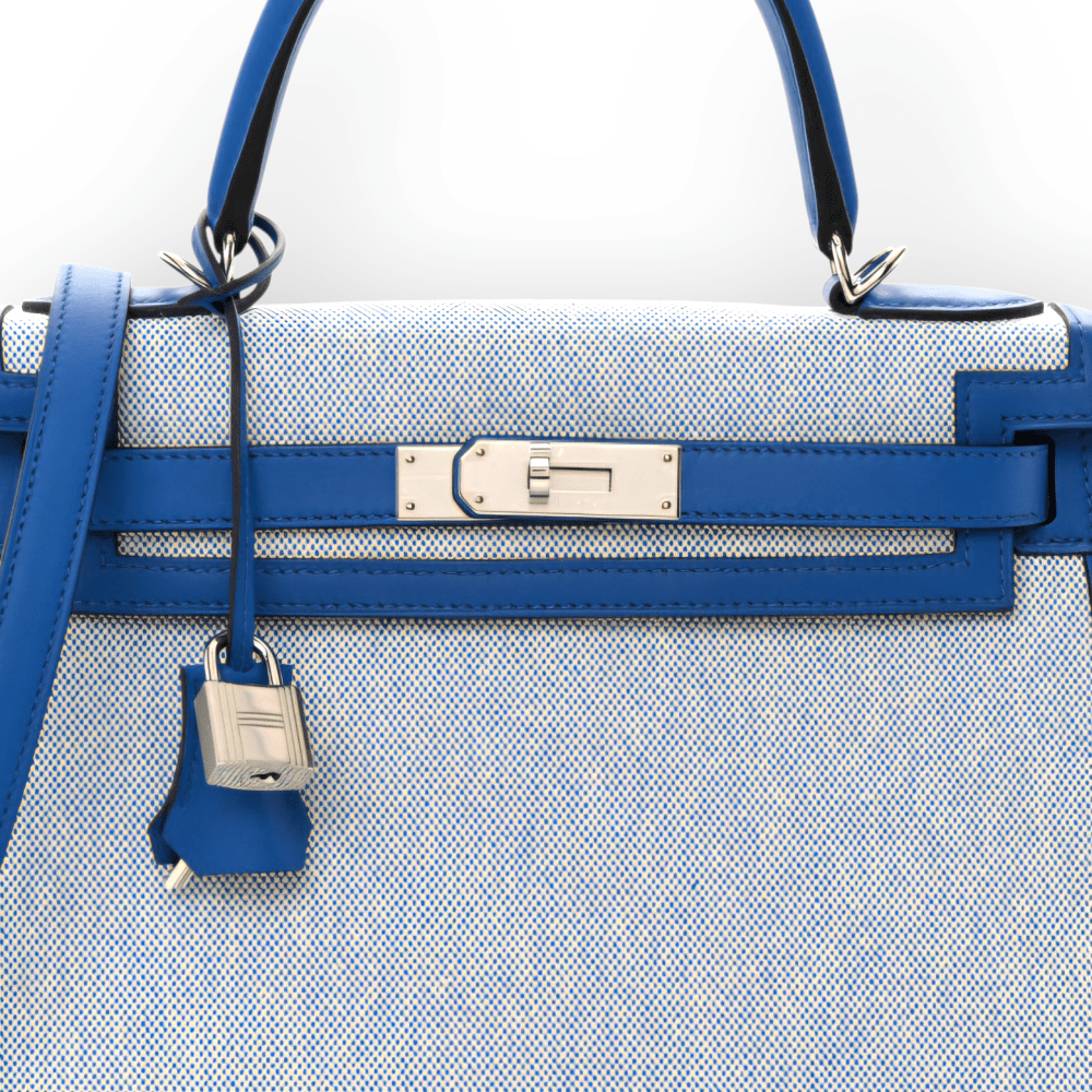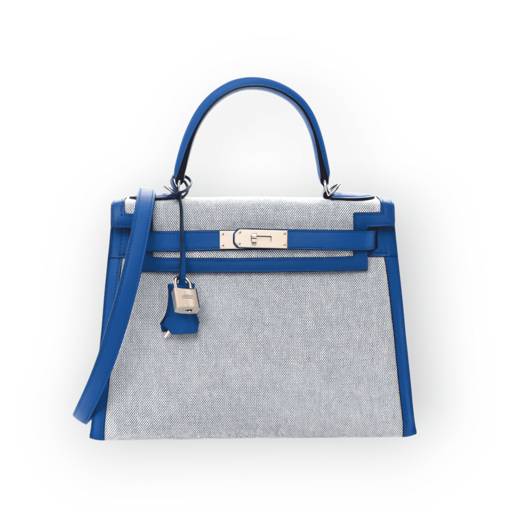 Pre-Owned Hermes Kelly 28 Sellier Toile Swift Ecru Blue France PHW