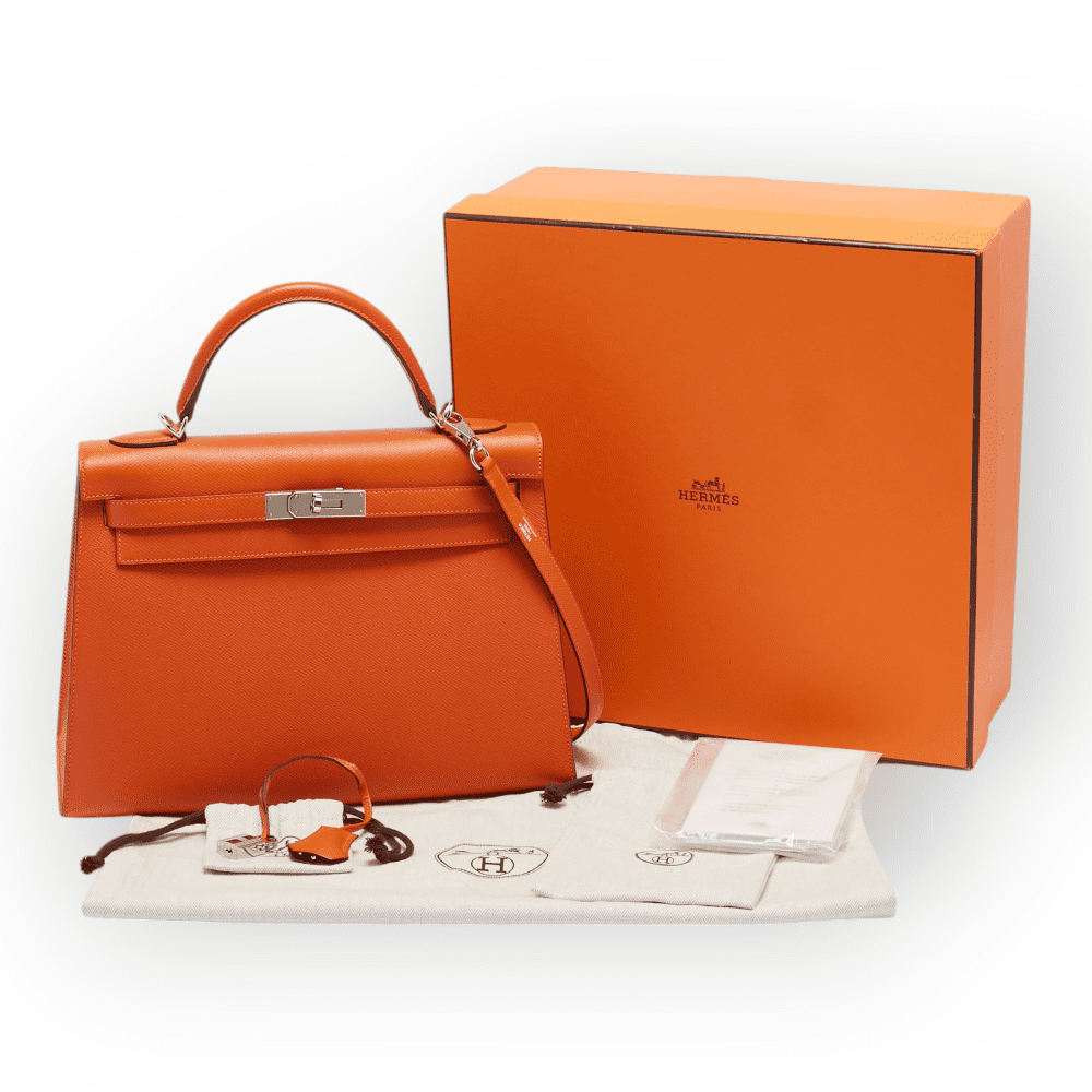 Pre-Owned Hermes Kelly 35 Sellier Epsom Veau Orange Palladium Hardware