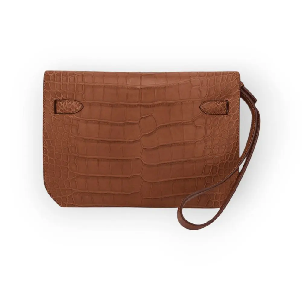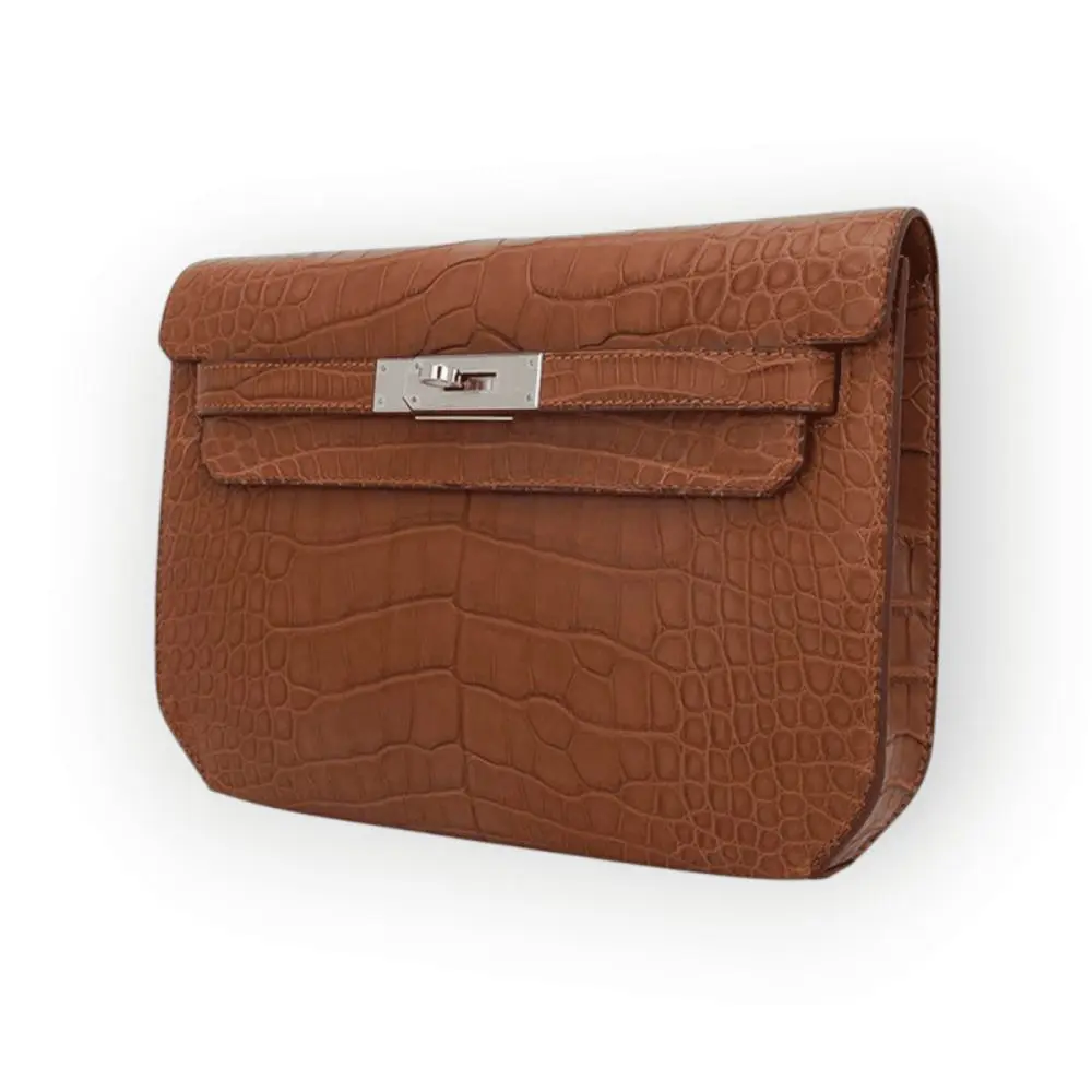 Pre-Owned Hermes Kelly Depeche 25 Gold Croco Palladium Hardware