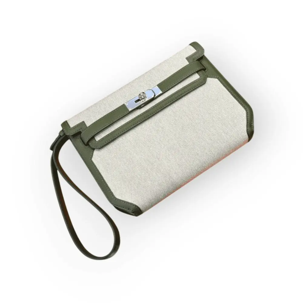Pre-Owned Hermes Kelly Depeche 25 Vert/Ecru Amande Togo With PHW