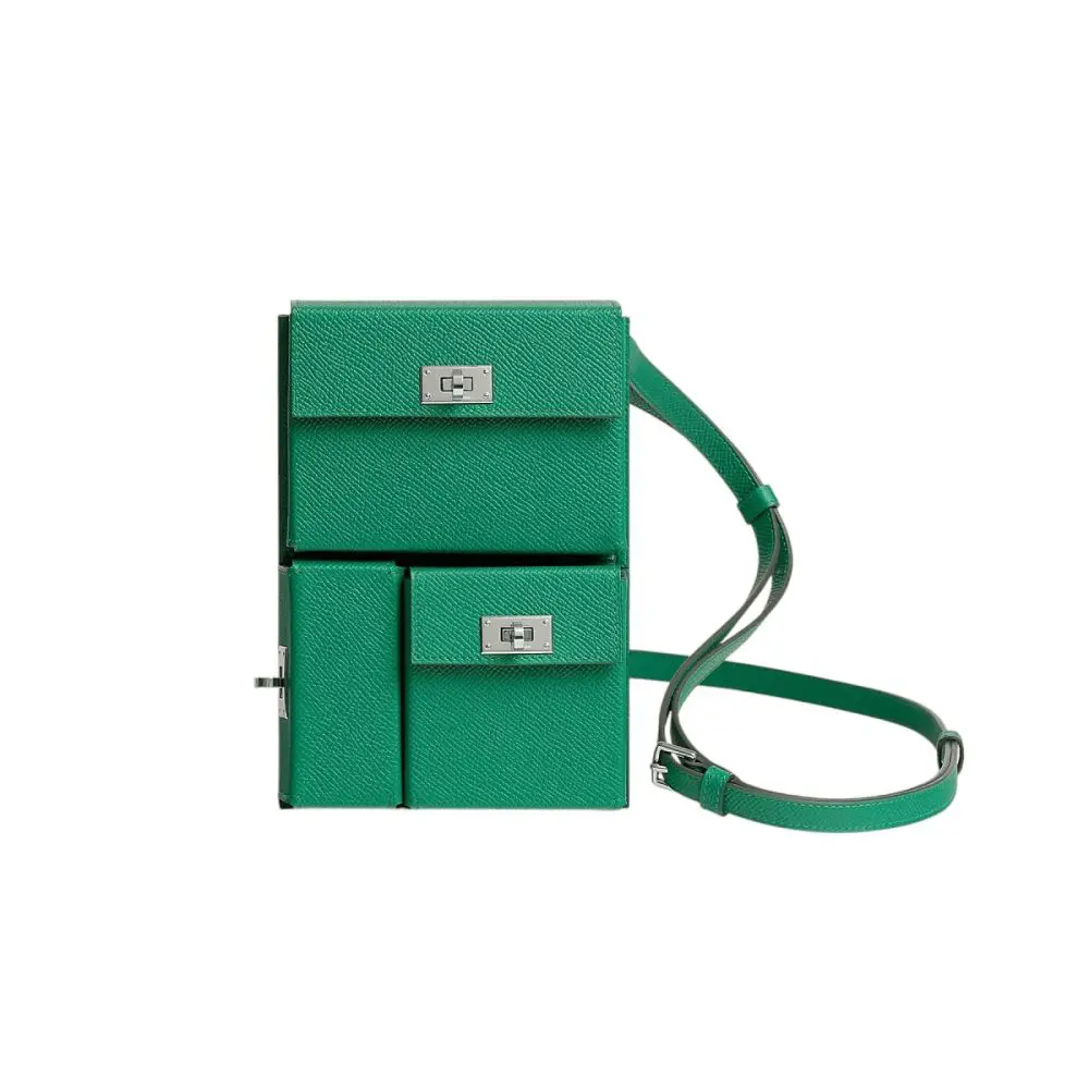 Pre-Owned Hermes Kelly Multipocket To Go Pouch Epsom Vert Vertigo PHW