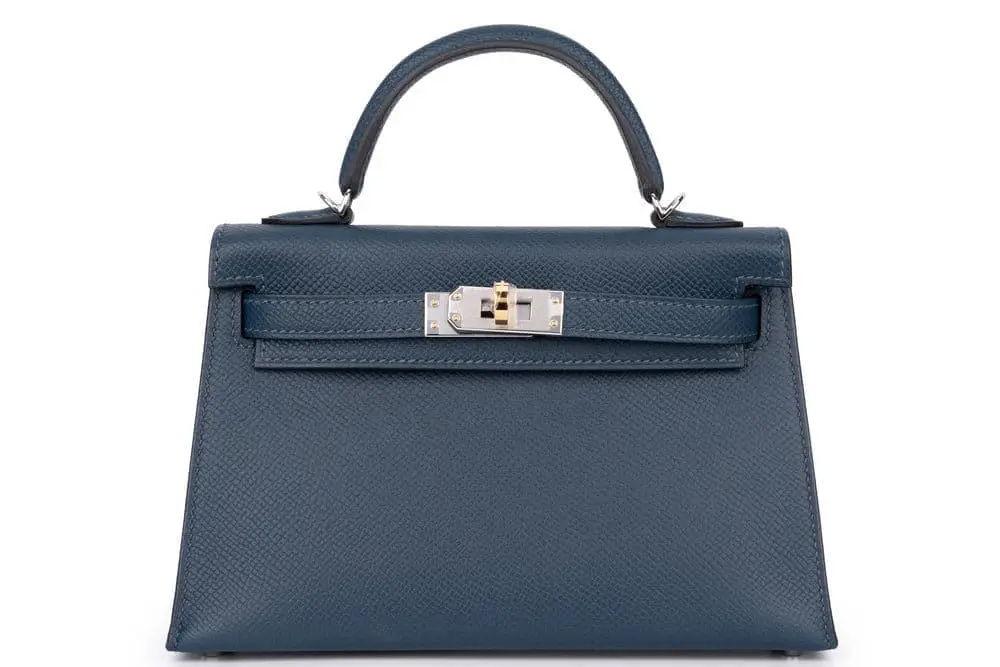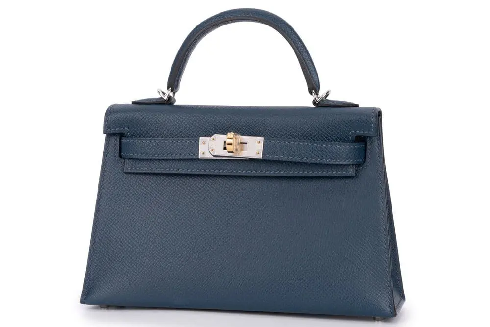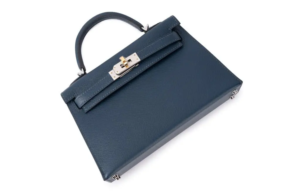 Pre-Owned Hermes Mini Kelly 20 Sellier Epsom blue PHW