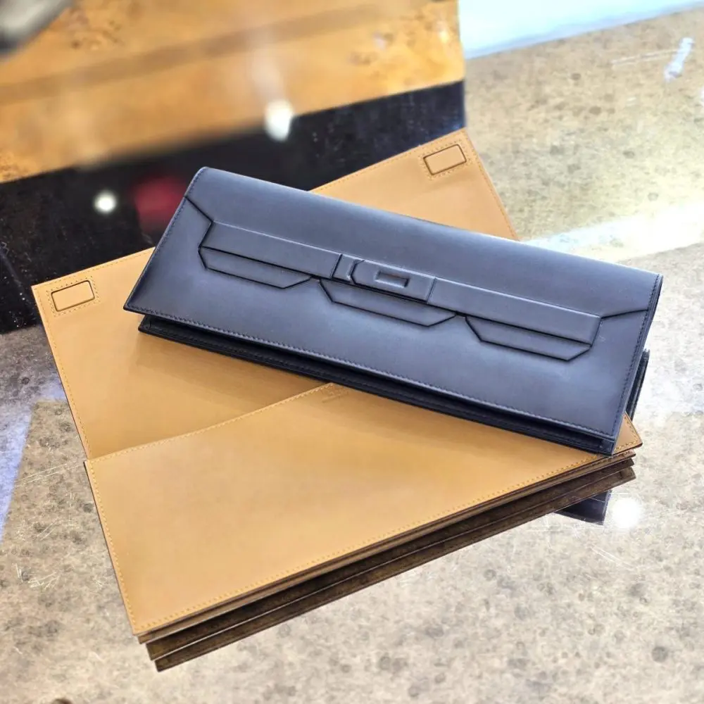 Pre-Owned Hermes Shadow Clutch Veau Swift Noir / Black