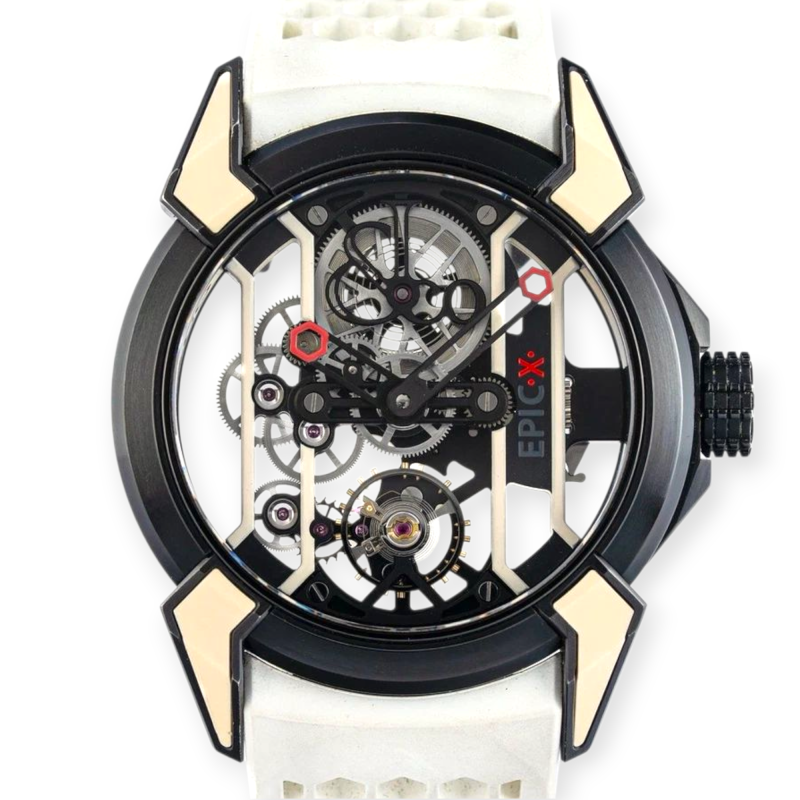 Pre-Owned Jacob & Co. Epic X Racing Black Titanium DLC 44mm Men’s Watch White Rubber Strap EX100.21.WR.PY.A
