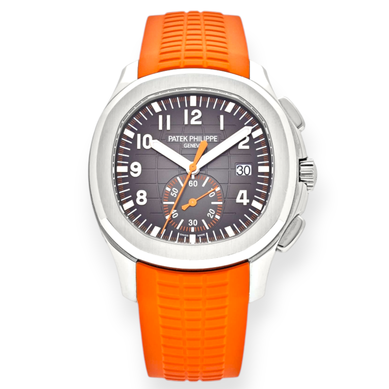 Pre-owned Patek Philippe Aquanaut Chronograph Steel Black / Orange Strap 42.2mm 5968A-001