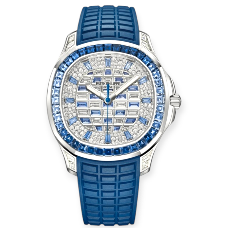 Pre-Owned Patek Philippe Aquanaut Luce Haute Joaillerie White Gold Paved Baguette Dial 38.8mm Dark Blue Strap 5268/461G