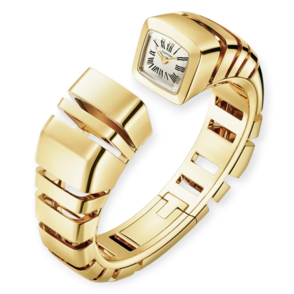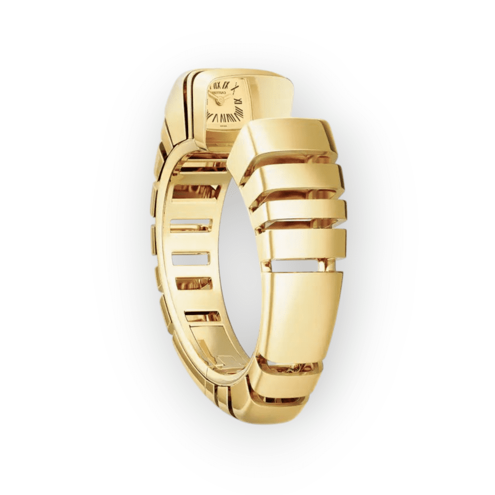 A statement of timeless elegance, this Cartier timepiece features a sleek yellow gold case and bracelet, exuding luxury. Powered by precise quartz movement, it pairs minimalist design with iconic Cartier details like Roman numerals and a sapphire crystal. The compact 15mm size offers understated sophistication, perfect for refined wrists. Water-resistant and crafted with meticulous attention to detail, it’s a hallmark of Cartier’s legacy in fine watchmaking.