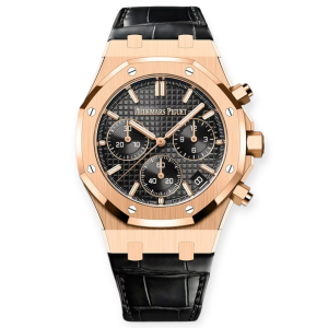 Pre-Owned Audemars Piguet Royal Oak SelfWinding Chronograph “50th Anniversary” 41mm Rose Gold Black Dial Black Leather Strap 26240OR.OO.D002CR.01