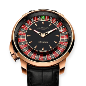 Pre-Owned Jacob & Co. Casino Tourbillion 44mm Flying Tourbillion Rose Gold Black Dial Leather Strap CA100.40.AA.AA.ABALA
