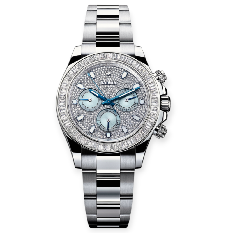 Pre-owned Rolex Cosmograph Daytona Platinum 40mm Ice Blue Diamond Set Dial 116576TBR
