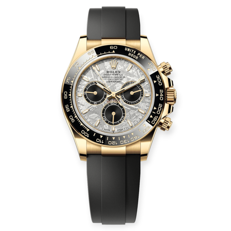 Pre-Owned Rolex Cosmograph Daytona Yellow Gold 40mm Meteorite Black Dial Oysterflex 126518LN-0016