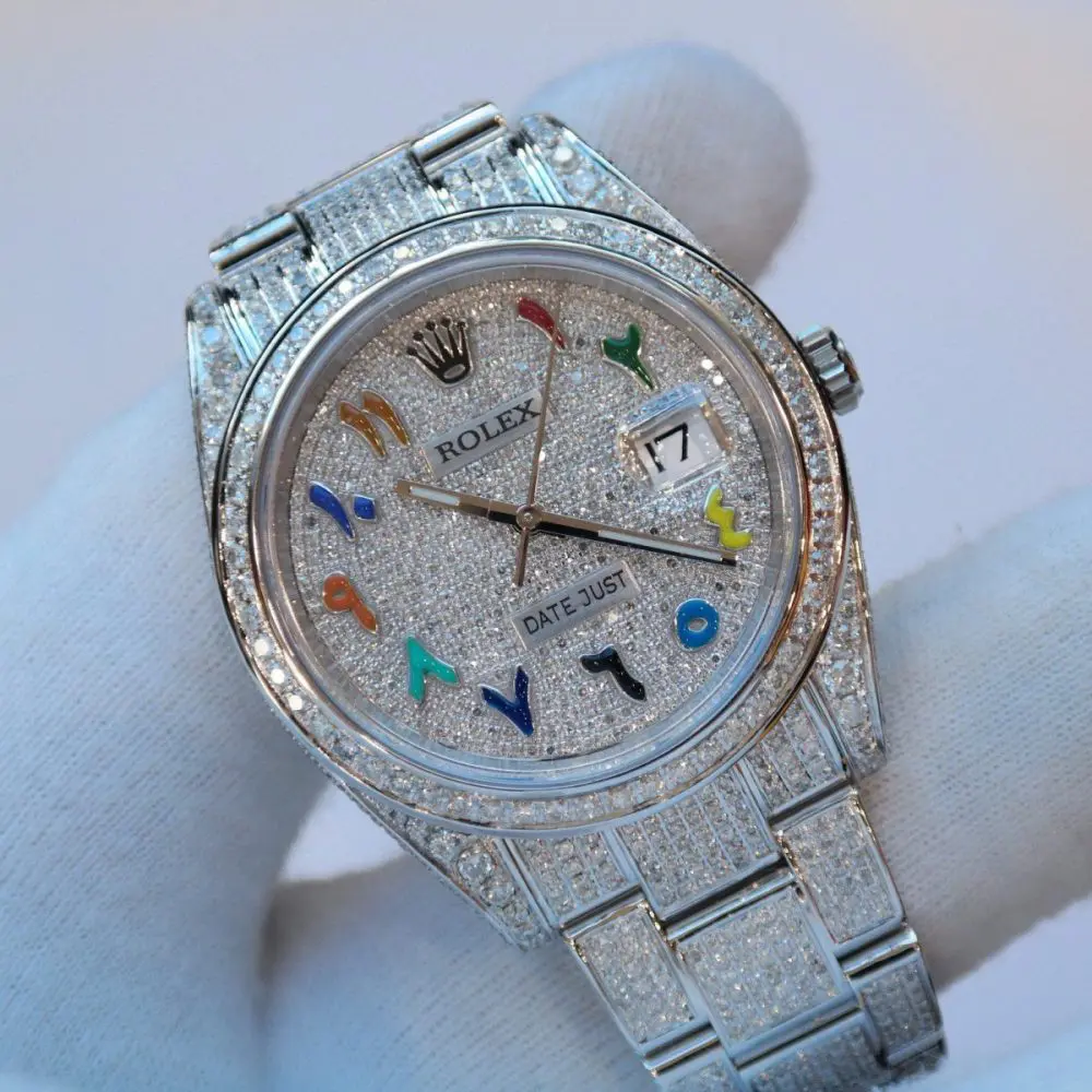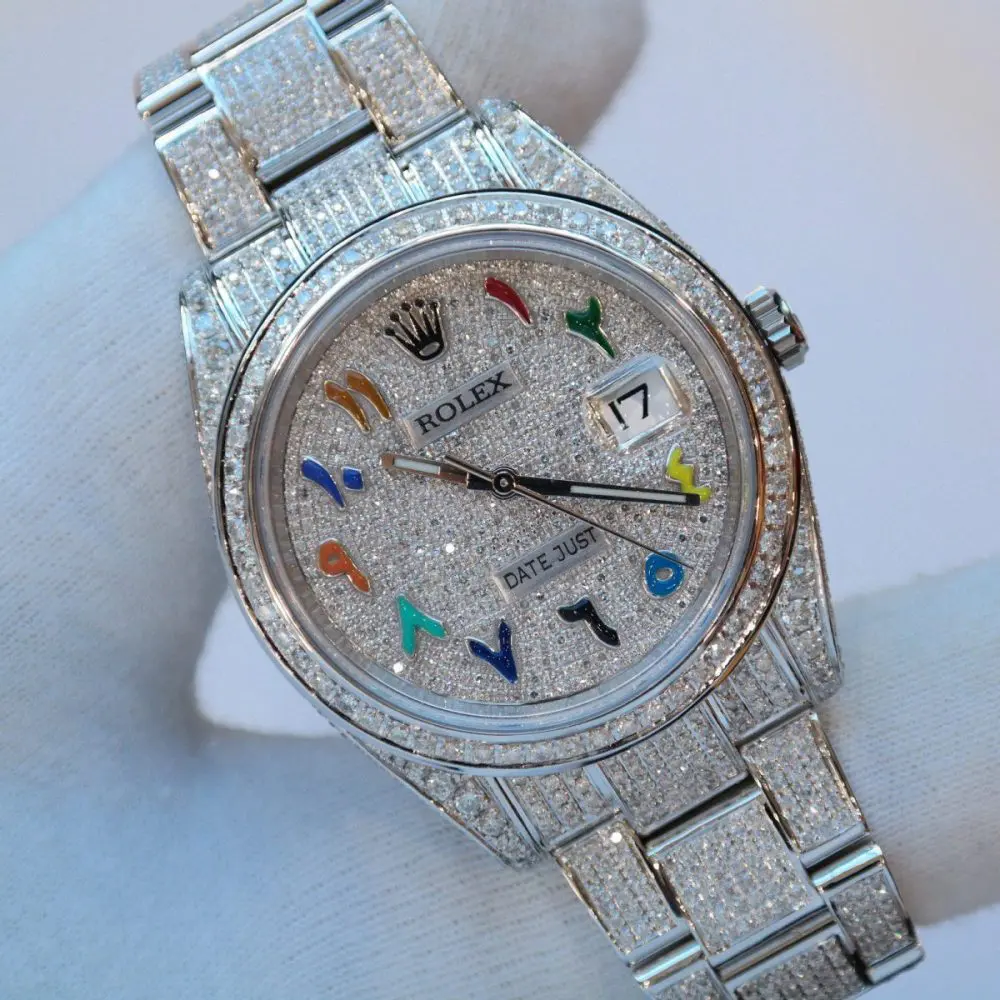 Pre-Owned Rolex DateJust Stainless Steel 41mm Paved Diamond Rainbow Arabic Dial Afterset 126300