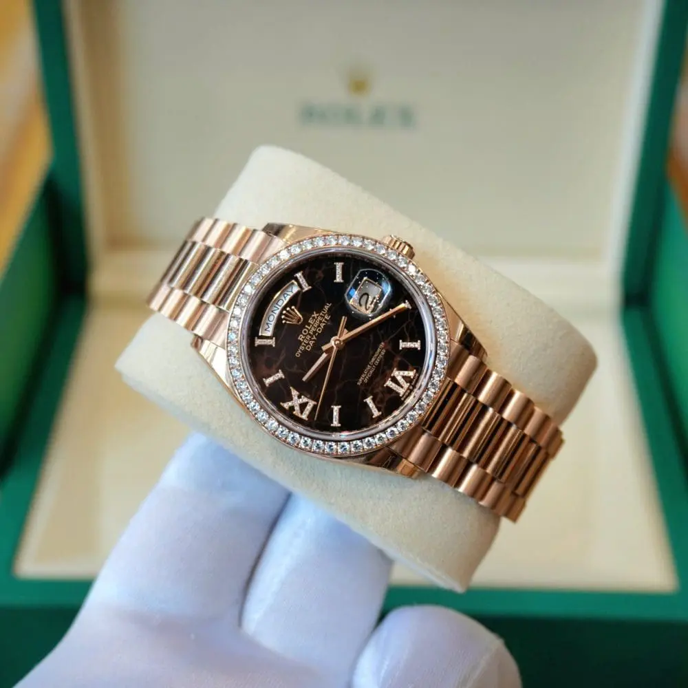 Pre-Owned Rolex DayDate 36mm Eisenkiesel Dial Diamond-Set BezelRose Gold President 128345RBR-0044