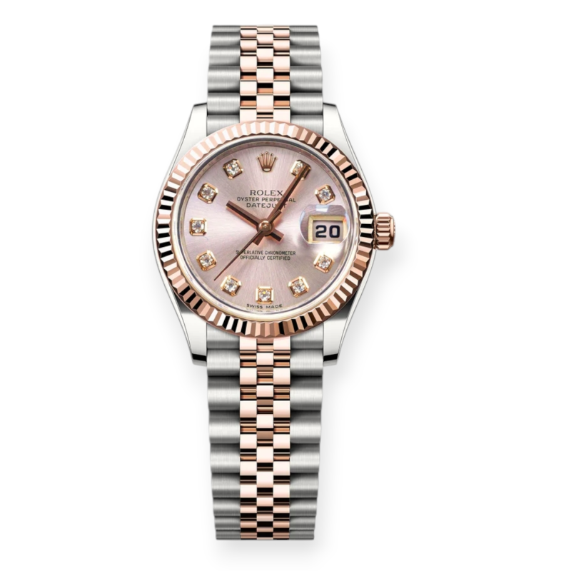 Pre-owned Rolex Lady DateJust Stainless Steel & Rose Gold 26mm Pink Diamond-Set Dial 179171-0018