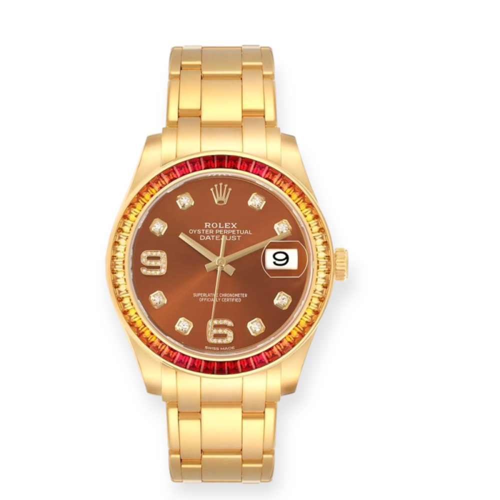 Pre-Owned Rolex Pearl Master DateJust Yellow Gold 39mm Cognac 86348SAJOR