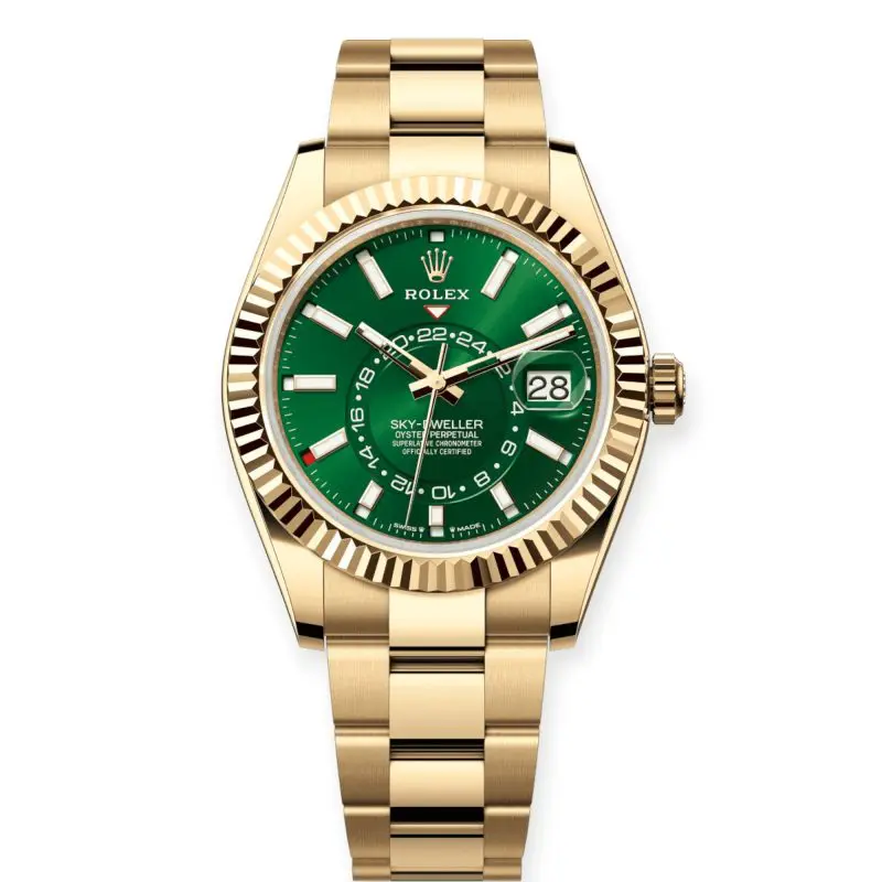 Pre-Owned Rolex Sky-Dweller 42mm Yellow Gold Bright Green Dial Oyster 336938-0007