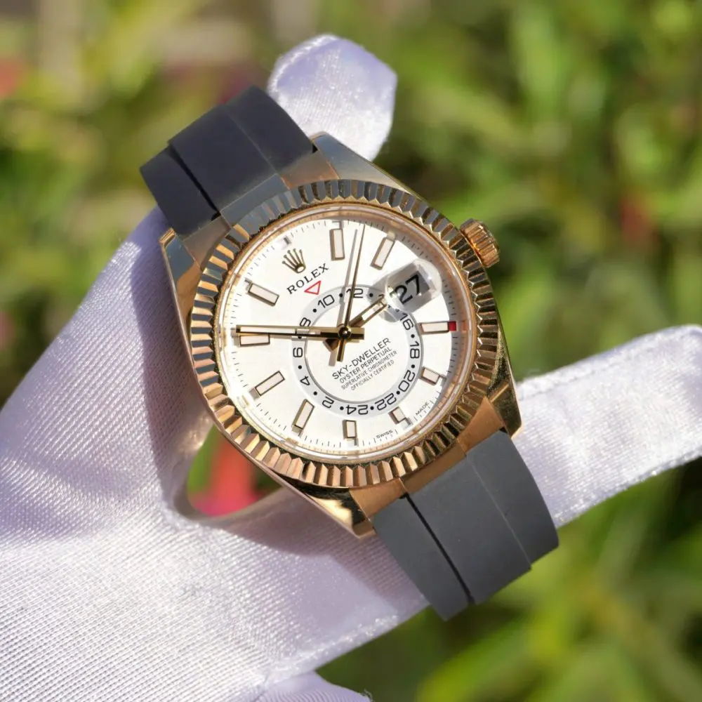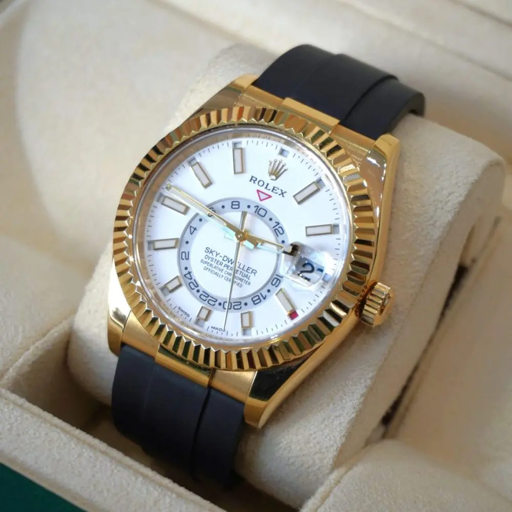 Pre-Owned Rolex Sky-Dweller 42mm Yellowgold White Index Dial Oysterflex 326238