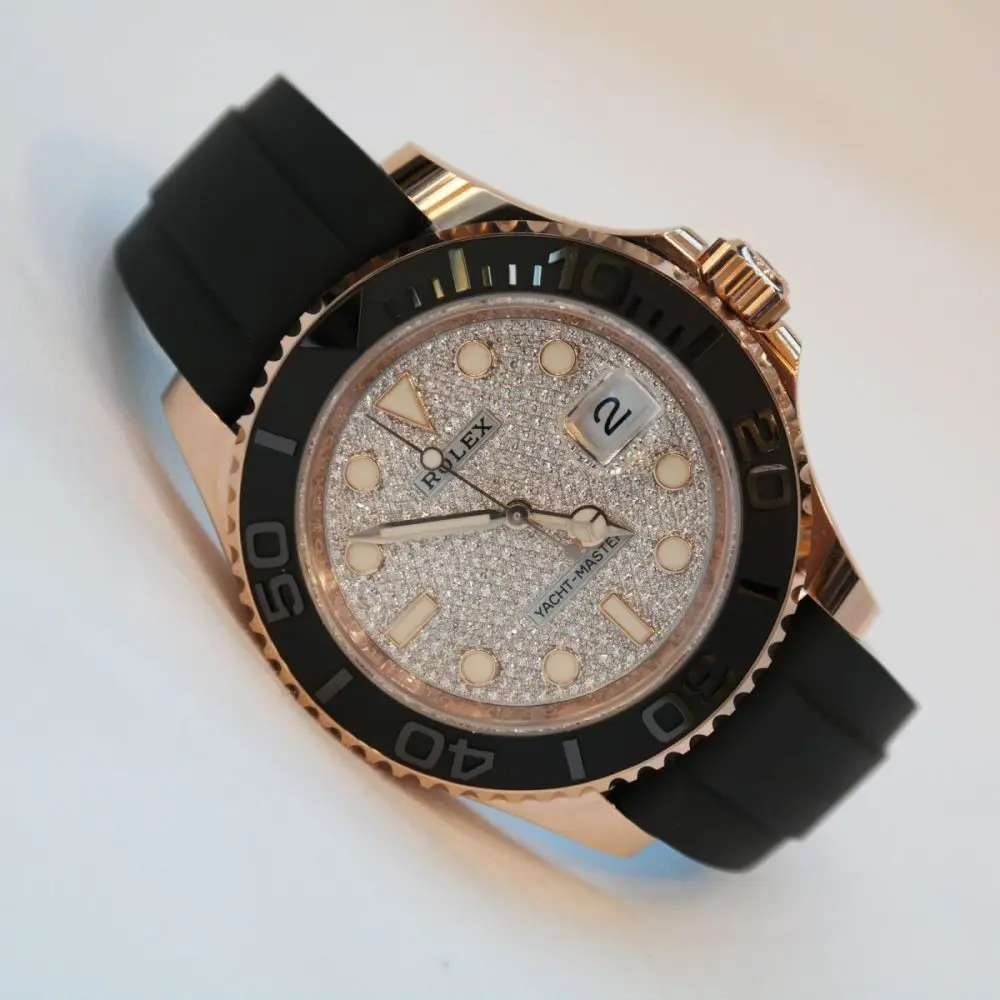 Pre-owned Rolex Yacht Master Rose Gold 40mm Diamond-Paved Dial Oysterflex 126655