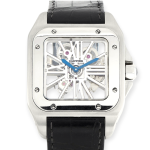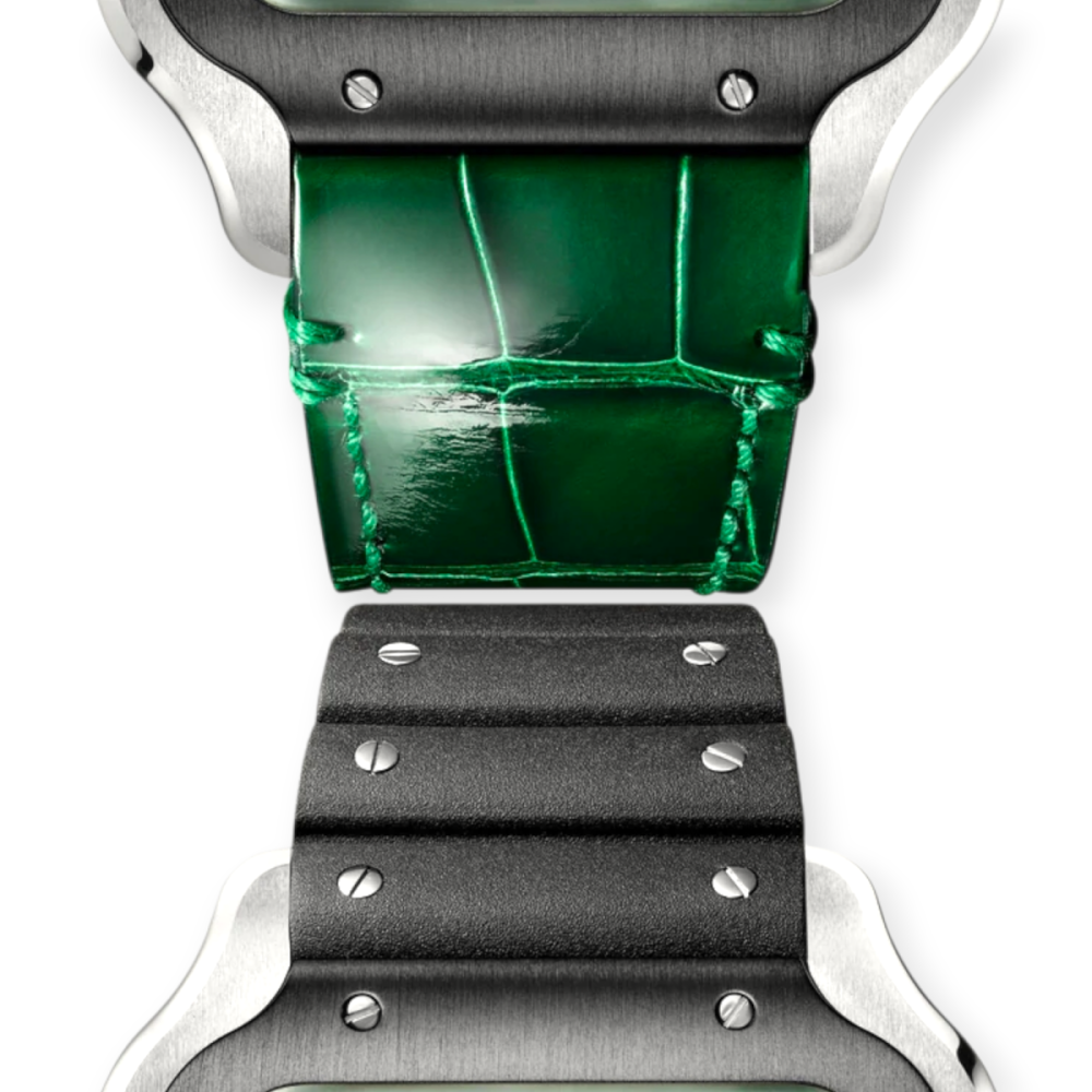 Pre-Owned Santos De Cartier “Large Model” Stainless Steel Green Dial WSSA0055