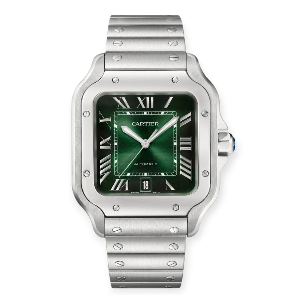 Pre-Owned Santos De Cartier Stainless Steel Large Green Dial WSSA0062
