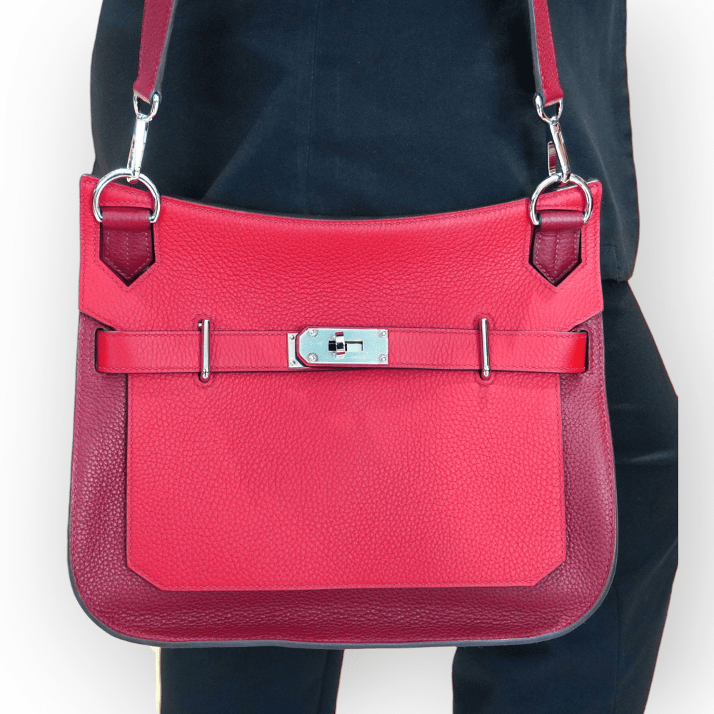 Pre-Owned Hermes Bicolor Casaque/Rouge Taurillon Clemence Leather Jypsiere 31 Bag PHW