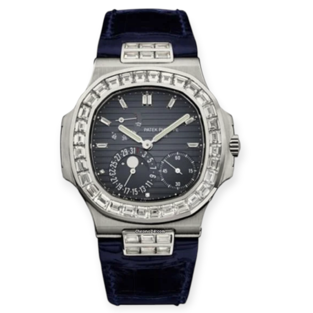 Pre-owned Patek Philippe Nautilus Full Platinum 40mm Bl...
