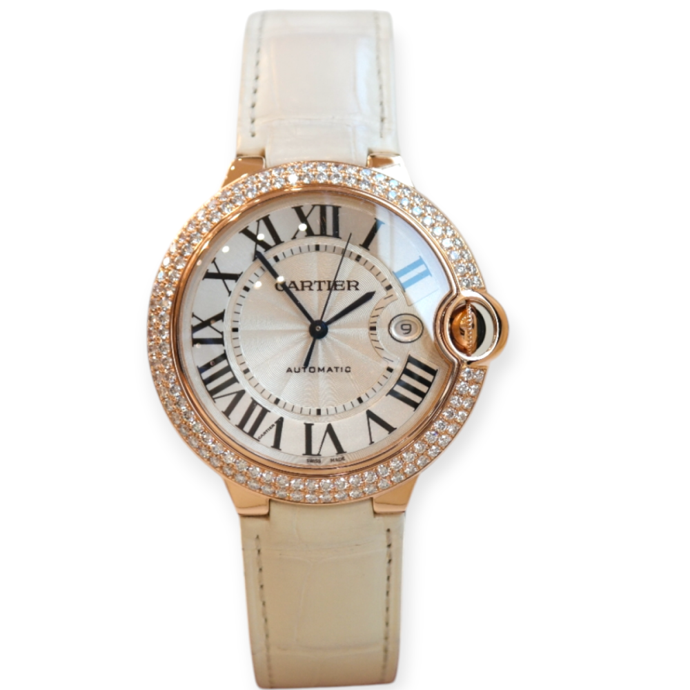 Pre-owned Cartier Ballon Bleu Rose Gold 42mm Diamond Be...