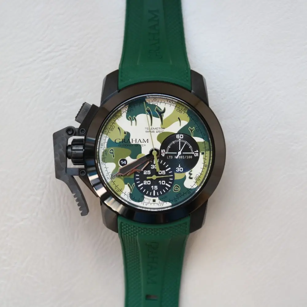 Pre-Owned Graham Chronofighter Oversize Arrow Green Cam...