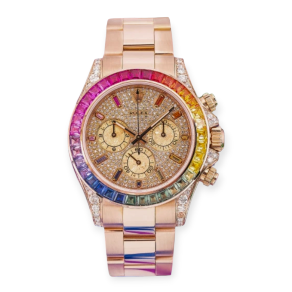 Pre-Owned Rolex Daytona Rose Gold 40mm Rainbow Paved-Di...