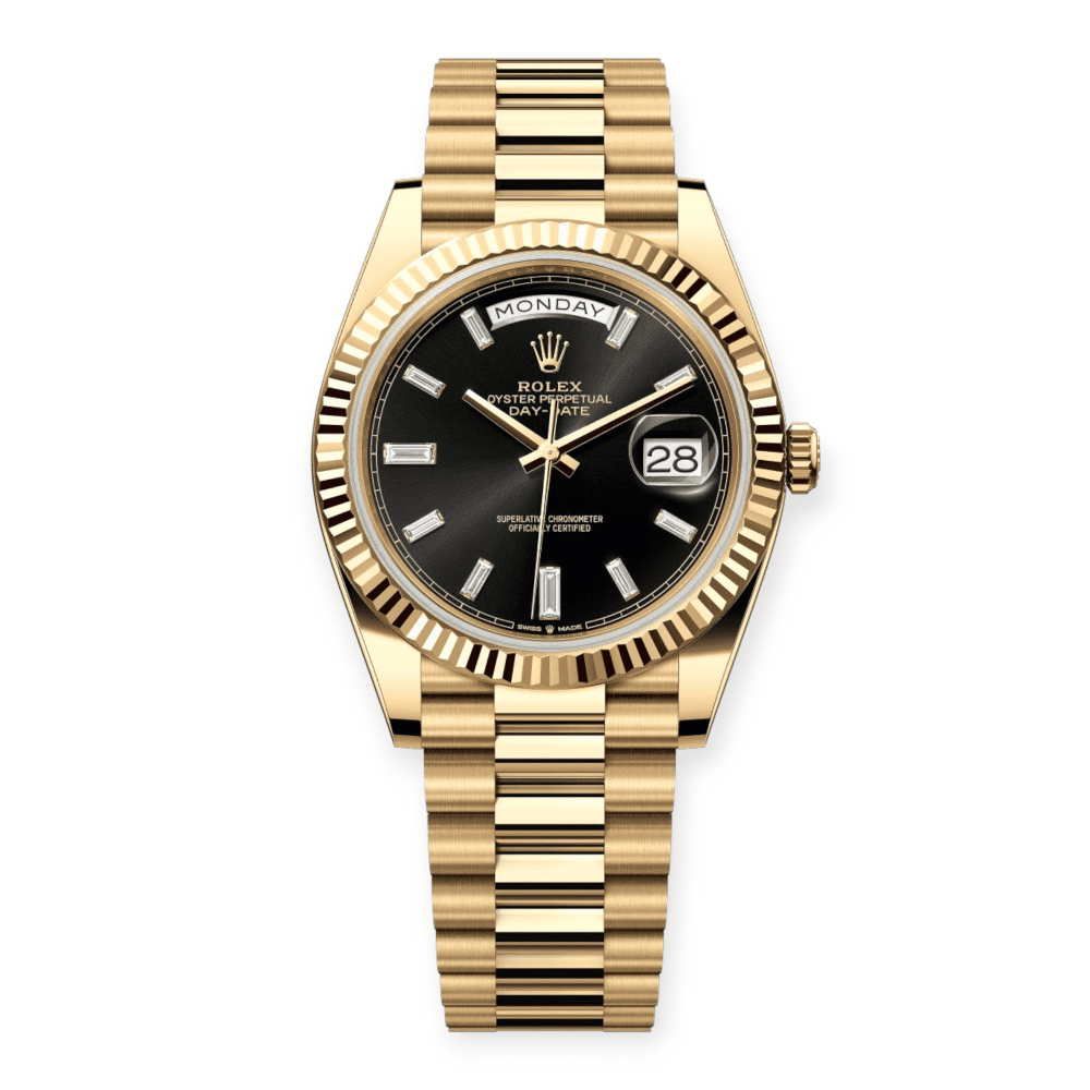 Pre-Owned Rolex Day-Date 40mm Yellow Gold Black Baguett...